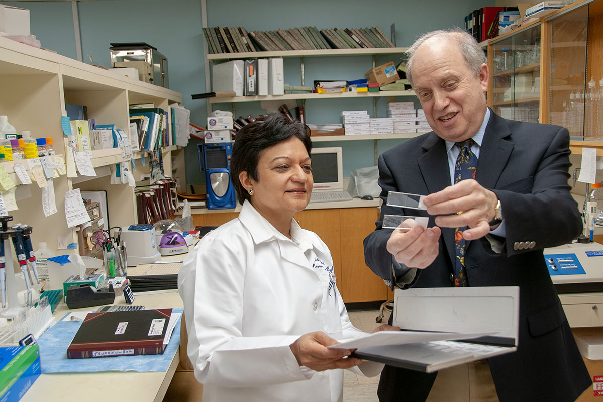 In 1996, Pestronk, who leads the university’s Neuromuscular Disease Clinic, was reviewing microscope slides of muscle from a patient with muscle pain and weakness when he saw something odd: Scavenger cells that normally feed on dead material were crowded around injured muscle fibers.